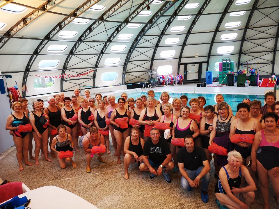 Les adhérentes de l'aquagym ont eu l'heureuse surprise de se voir remettre une magnifique serviette de bain à l'effigie du club lors de leur séance du mercredi matin.