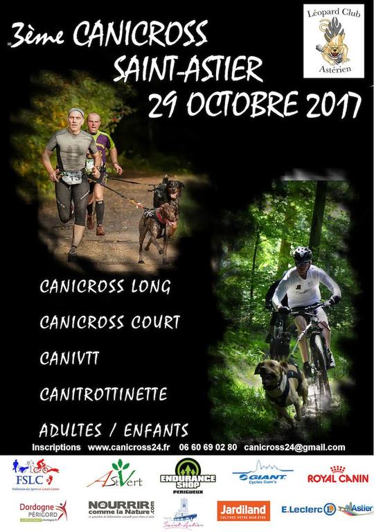 Le dimanche 29 octobre 2017, sur la commune de Saint-Astier (24), se déroulera la 3ème édition du canicross de Saint-Astier.