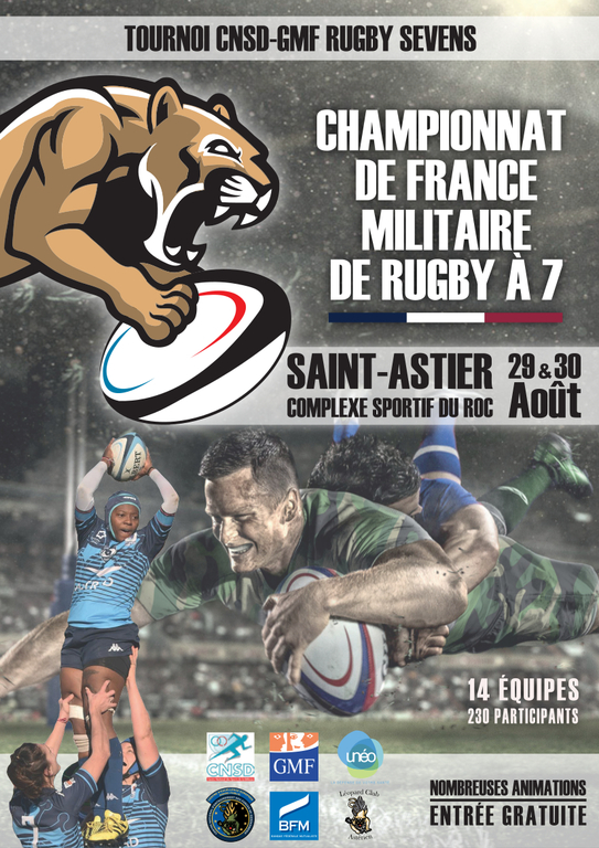 Les Mercredi 29 et Jeudi 30 août 2018 aura lieu le Championnat de France Militaire de RUGBY à 7 au complexe sportif du Roc à Saint Astier.